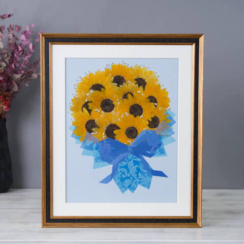 【49額】【ヒマワリ大輪12本】【 押し花】⑥ - 押し花 - プロポーズ | アフターブーケ加工事例